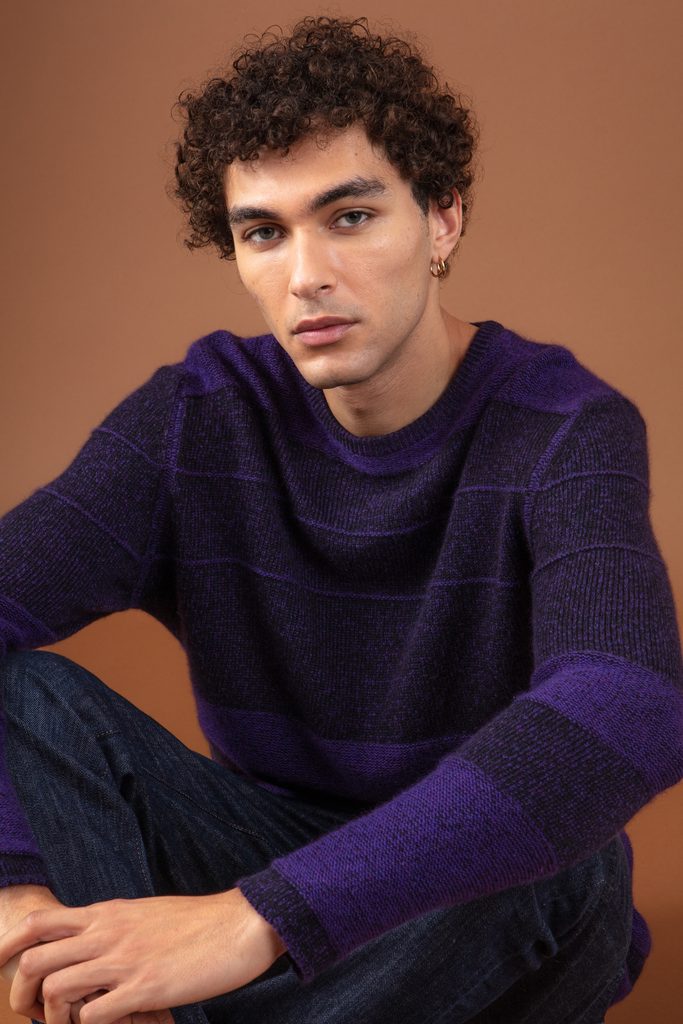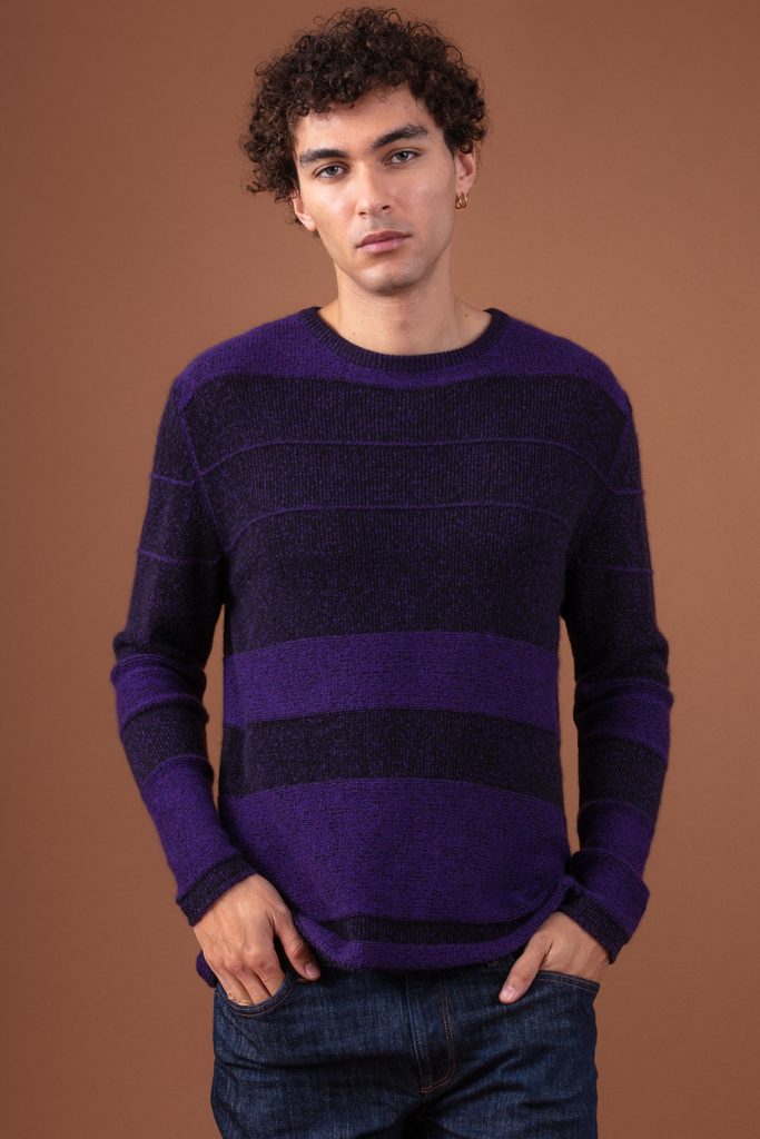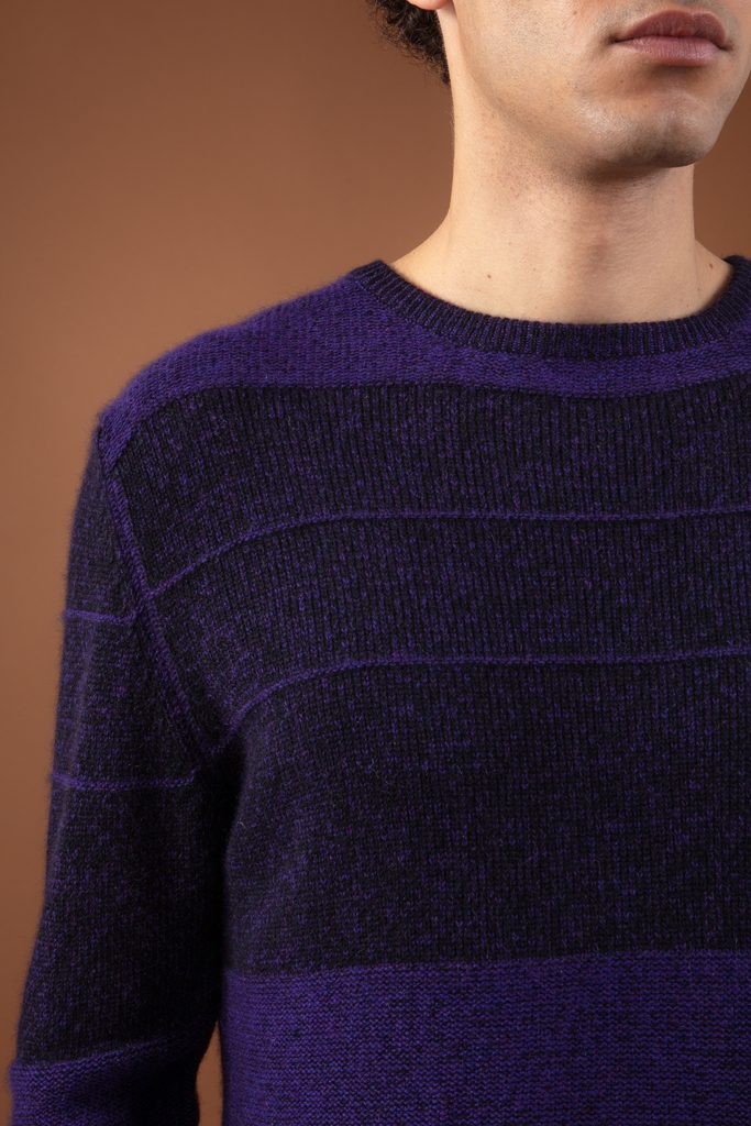 The RACINE jumper features a subtly graphic texture, created by alternating knit and purl stitches in a horizontal striped pattern. Knitted in 4-ply 100% cashmere, it offers enveloping warmth and premium comfort.